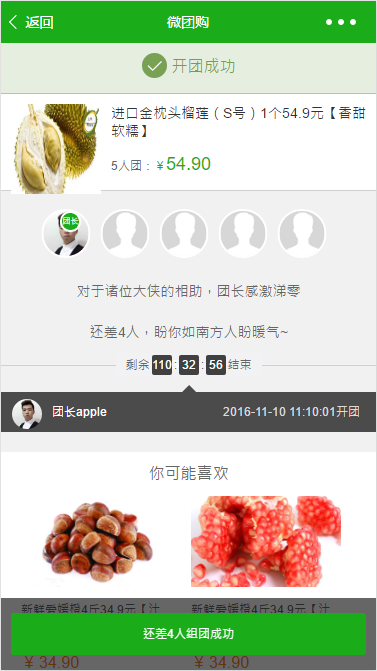 微信拼团小商城,是一套基于最新微信小程序独一无二的拼团系统。 目标: 完成拼团整套订单流程,后台数据交互。拼团/发货/购买/发布/升级,微信登录,微信支付,微信分享,微信通知。