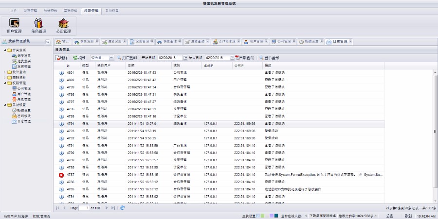 5:系统设置 警报提醒功能,可设置应收或应付的上下限金额进行提醒,也可设置认证日期的提醒. 日志管理,对每个操作员对哪个模块都进行了哪些操作做以记录.