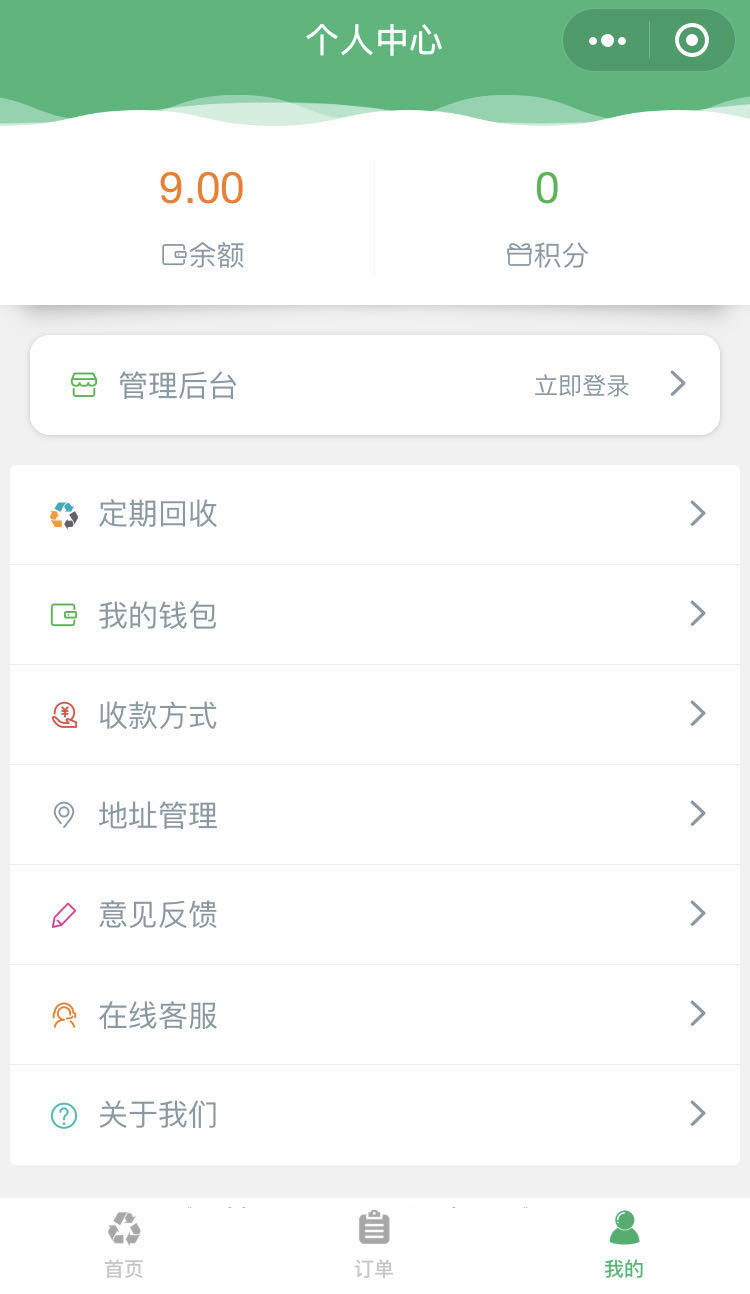 废品回收小程序是一款专注于垃圾回收小程序源码,支持协议定期企业废品回收,垃圾分类小区物业定期回收,首页统计,车夫列表,车夫审核,回收记录,订单管理,单次回收,周期回收