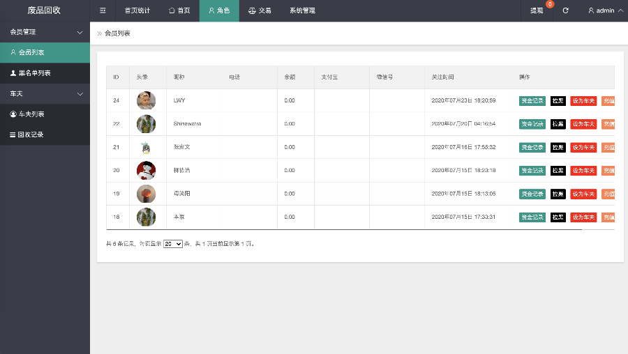 提现管理,会员管理,设置回收员,推广员审核,积分商城,积分商品,积分兑换