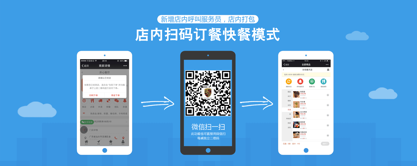 码上点餐是基于微信公众帐号的自助点单系统。通过码上点餐,店家可以将自己店铺的产品和信息展现在微信公众号上面。顾客可以通过微信关注店铺公众号,然后在微信里面实现直接浏览商品并下单,利用微信的便利性,实现随时随地点单,极大地方便了用户,同时也拓展了店家的销售渠道。